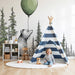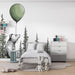 Transform your baby's room into a sweet haven of peace with this nursery room wallpaper featuring a dreamy bear holding a cute green balloon. Surrounded by majestic fir trees, this design evokes the magic of enchanted forests, creating a soothing and magical atmosphere.