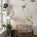 This enchanting design features butterflies with translucent wings dancing lightly above watercolor-painted flowers. The beige, sage green, and powder pink shades harmonize perfectly to create an atmosphere that is both soft and refined. The light and textured background enhances this feeling of lightness, offering an impression of delicate and airy movement. Every detail is crafted with finesse to bring an artistic and timeless touch to the decor.