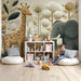 Nursery room wallpaper | Jungle animals with giraffe, elephant, and fawn