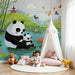 Discover our panda wallpaper representing a serene and colorful scene by the water. This charming design features pandas playing on lily pads surrounded by lotus flowers and lush bamboo. Perfect for a child's room or playroom, it brings a touch of cheerfulness and tranquility to your space.