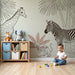 Papel pintado infantil | Safari con jirafa, cebra y divertidos monos