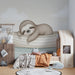 Transforma la habitación de tu bebé en un espacio acogedor con este papel pintado infantil que representa a un adorable perezoso descansando en un pequeño bote. Con su sonrisa serena y su aire relajado, este perezoso aporta una sensación de dulzura y tranquilidad al espacio.