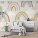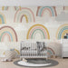 Papel pintado infantil | Arco iris pastel y nubes suaves