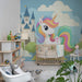 Papel pintado infantil | Castillo mágico y unicornio arcoíris