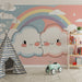 Papel pintado infantil | Nubes sonrientes y arco iris pastel