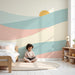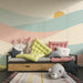 Papel pintado infantil | Suaves olas pastel con un sol naciente