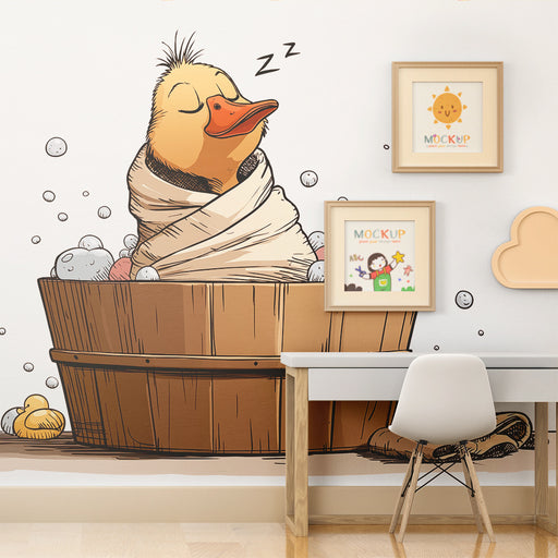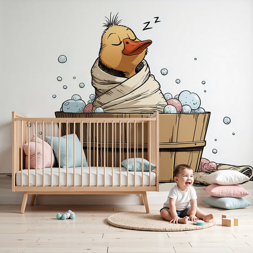 KidsWallTransforma la habitación de tu bebé en un universo lúdico y tranquilo con este papel pintado infantil que muestra un adorable patito dormido en un ...