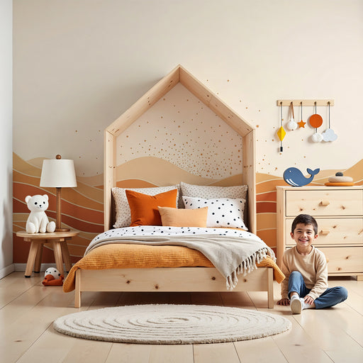 Nuestra colección de papeles pintados beige trasciende los códigos tradicionales de la decoración mural infantil proponiendo motivos refinados e intemporales. Los tonos neutros y cálidos se presentan en una paleta sutil, desde el beige arena hasta el cappuccino delicado, creando en sus paredes una base perfecta para estimular la imaginación de los más pequeños. Para un ambiente aún más cálido, descubra nuestra selección de papeles pintados terracota que combinan armoniosamente con los tonos beige. Estos revestimientos murales premium asocian diseños contemporáneos con texturas suaves que captan delicadamente la luz, ofreciendo una profundidad visual única a la habitación. Cada motivo ha sido minuciosamente elaborado para armonizar con las tendencias actuales mientras conserva ese toque de inocencia propio de las habitaciones infantiles, permitiendo así una evolución natural de la decoración a lo largo de los años.
