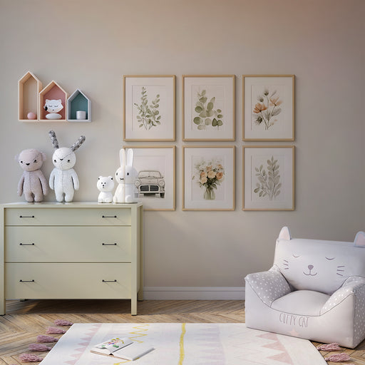 KidsWallDa un toque de serenidad y elegancia a tu interior con esta galería mural de naturaleza compuesta por seis marcos. Cada marco muestra ilustraciones...