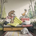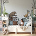Papel pintado infantil | Oso y ciervo en bicicleta en el bosque