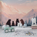 Transforma la habitación de tu hijo en un verdadero refugio natural con este papel pintado infantil, que representa a una tranquila familia de osos observando las majestuosas montañas. Esta ilustración cautivadora invita a escapar, fomentando la imaginación y la curiosidad.