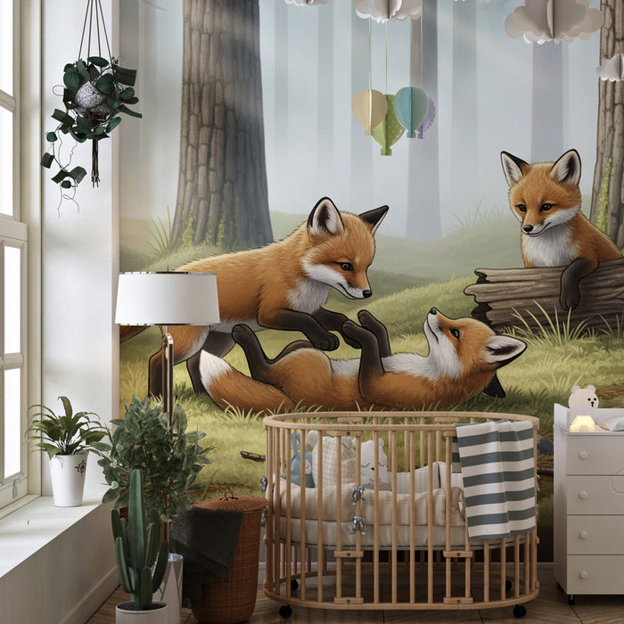 Papel pintado infantil | Pequeños zorros en el bosque