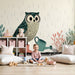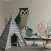 Papel pintado infantil | Búho jardinero bajo la lluvia