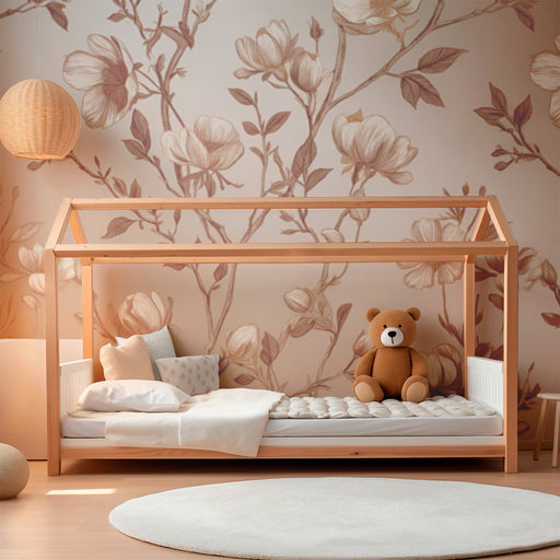 KidsWallDéjese seducir por la elegancia atemporal de este papel pintado infantil, donde delicadas flores en tonos melocotón y verde salvia crean una atmósf...