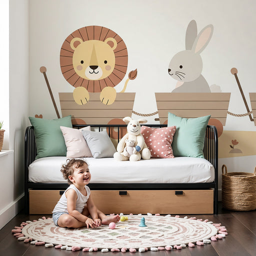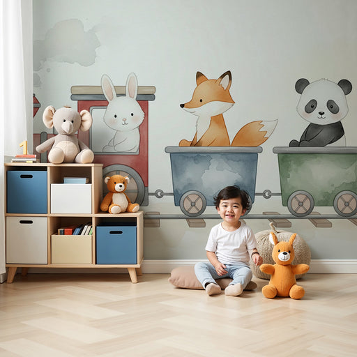 Papel pintado infantil | Animales en vagón para una aventura encantada
