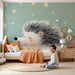 El suave fondo en tonos menta, salpicado de estrellas brillantes, crea un ambiente tranquilo y sereno, perfecto para la habitación de tu pequeño. Los toques de colores cálidos añaden una dimensión de confort y calidez al espacio, mientras que la divertida silueta del erizo capta la atención de los más pequeños.