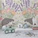 Añade un toque de suavidad y naturaleza a la habitación de tu hijo con este papel pintado infantil que representa encantadores erizos rodeados de flores coloridas. Las flores, como las margaritas, la lavanda y las amapolas, crean un ambiente alegre y acogedor.