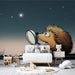 Papel pintado infantil | Erizo curioso bajo las estrellas
