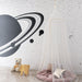Le design monochrome, avec des nuances de noir et de blanc, apporte une touche moderne et élégante à la pièce. Les détails des planètes et des étoiles, soigneusement dessinés, ajoutent une dimension artistique qui captivera l'esprit curieux de votre enfant. Ce décor spatial invite à l'exploration et à la découverte des merveilles de l'univers.