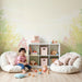 Esta decoración natural y sutil invita a la ensoñación y al escape, estimulando la imaginación de tu pequeño. Los colores suaves se combinan perfectamente con muebles de madera clara y accesorios de tela natural, creando así un ambiente cálido y acogedor.