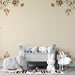 Cada flor está cuidadosamente dibujada, añadiendo un toque de naturaleza y suavidad a la habitación. El fondo beige claro resalta los detalles florales mientras ofrece un telón de fondo neutro y elegante.