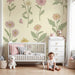 Cada flor, cuidadosamente dibujada, aporta un toque de naturaleza al espacio, mientras que las pequeñas mariposas añaden una nota de ligereza y magia. Esta decoración floral es ideal para crear un entorno sereno y acogedor, donde tu bebé podrá florecer.