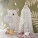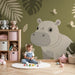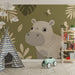 Los tonos suaves de verde y beige aportan un toque de serenidad, mientras que el encantador diseño del hipopótamo invita a la exploración y la imaginación. Cada detalle, desde las exuberantes hojas hasta las pequeñas mariposas, está cuidadosamente diseñado para estimular la curiosidad de tu hijo.