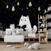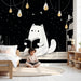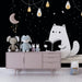 Papel pintado infantil | Lindo gato leyendo bajo las estrellas