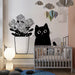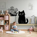 Papel pintado infantil | Gato negro travieso y delicadas flores