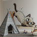Agrega un toque de diversión y creatividad a la habitación de tu hijo con este papel pintado infantil que presenta a un adorable y travieso gato. Este pequeño felino curioso juega alegremente alrededor de la letra 'K', creando un ambiente lúdico y atractivo en el espacio.
