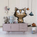 Los colores suaves y brillantes de los bloques llaman la atención, mientras que el pelaje del gato está bellamente detallado, aportando calidez y encanto a esta decoración mural. Este diseño único estimula la curiosidad y la imaginación de los pequeños, transformando su espacio personal en un lugar lleno de aventuras y descubrimientos.