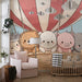 Embárcate en una aventura aérea con este papel pintado infantil que presenta animales adorables en un colorido globo aerostático. Un león, un oso polar, un cerdo y un oso negro se paran alegremente en la cesta, listos para explorar el cielo. Esta encantadora y lúdica ilustración aporta un toque de magia y dulzura a la habitación de tu pequeño.