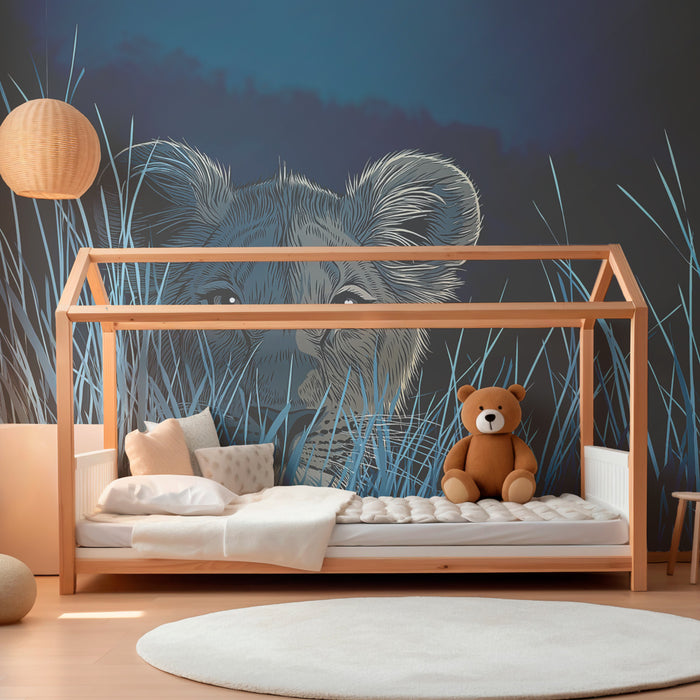 Transforma la habitación de tu hijo en un verdadero santuario de la sabana con este papel pintado infantil que representa a un cachorro de león curioso. En un entorno cautivador, esta ilustración artística muestra la mirada penetrante de un joven león a través de la hierba alta, evocando un sentimiento de aventura y misterio.