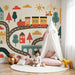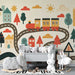 Papel pintado infantil | Pueblo encantado y tren colorido