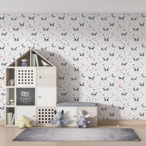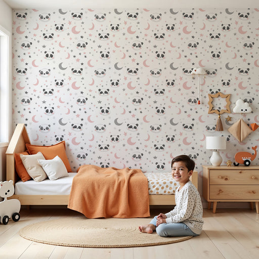 KidsWallTransforma la habitación de tu hijo en un remanso de paz con este papel pintado encantador adornado con adorables pandas y motivos de luna y estrel...