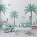 Los majestuosos palmeras y las suaves tonalidades de verde crean una atmósfera serena y tranquilizadora, ideal para estimular la imaginación de los más pequeños. Cada detalle, desde las delicadas hojas hasta los animales traviesos, está cuidadosamente diseñado para ofrecer un aspecto armonioso y natural.