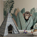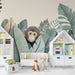 Rediseña la habitación de tu hijo en un verdadero rincón de la jungla con este papel pintado infantil cautivador. Un adorable mono travieso emerge de la exuberante vegetación, creando un ambiente lúdico y lleno de vida. Las hojas tropicales, pintadas en tonos suaves de verde y beige, aportan un toque de naturaleza calmante al espacio.