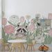 Embellece la habitación de tu bebé con este papel pintado infantil encantador que destaca a un adorable mapache acurrucado entre elegantes flores. Las peonías en rosa suave y las margaritas brillantes crean un ambiente suave y acogedor, perfecto para estimular la imaginación de los más pequeños.