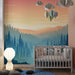 Las delicadas tonalidades de la niebla matutina y las montañas lejanas añaden un toque de misterio, invitando a la exploración y la imaginación. Esta encantadora decoración es perfecta para despertar la curiosidad de tu hijo y estimular su espíritu aventurero.