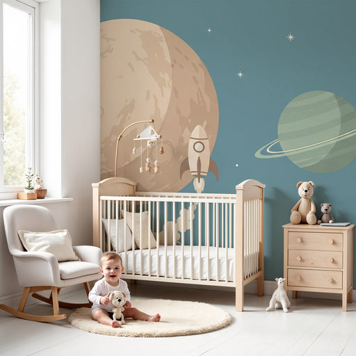 Con este papel pintado infantil, crea un espacio propicio para los sueños y la exploración. Combínalo con luminarias en forma de estrellas, cojines galácticos y objetos decorativos inspirados en el universo para una inmersión total. Un decorado mágico que acompañará a tu hijo en sus más bellas aventuras espaciales.