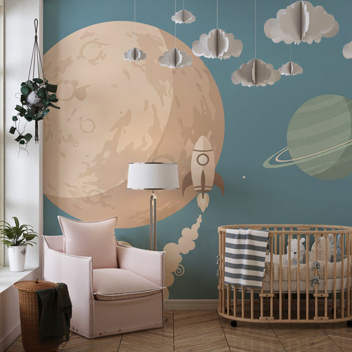 Papel pintado infantil | Aventura espacial y nubes estrelladas