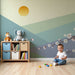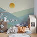 Papel pintado infantil | Flores de cerezo y montañas pastel