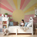 Brinda un toque de suavidad y calidez a la habitación de tu hijo con nuestro papel pintado de rayos de sol pastel. Este diseño luminoso con tonos de rosa y amarillo evoca un amanecer radiante, perfecto para alegrar el ambiente.