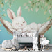 Cree un ambiente tranquilo y soñador con nuestro papel pintado de conejo dormido y suave follaje. Este hermoso diseño presenta a un adorable conejo blanco descansando pacíficamente en una hamaca rodeada de un delicado follaje, sobre un fondo degradado de azul y verde.