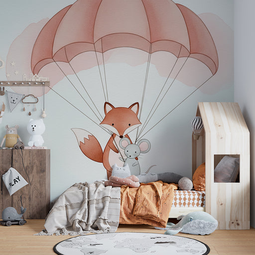 Ver todos los detallesPapel pintado infantil | Zorro y ratón en paracaídas