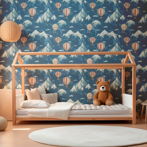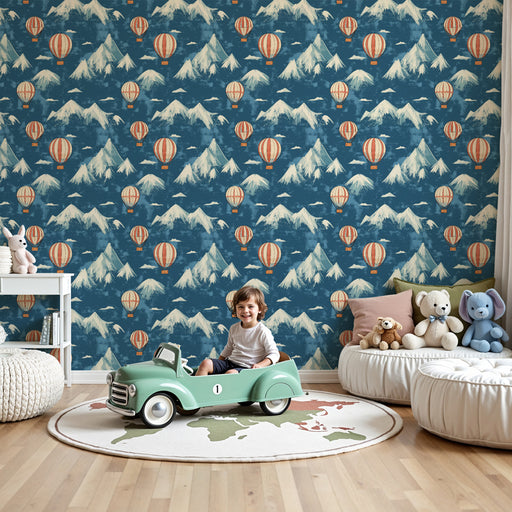 KidsWallOfrece a tu hijo una evasión al corazón de los cielos con este papel pintado infantil que lo invita a viajar entre montañas majestuosas y globos ae...