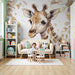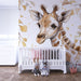 Papel pintado infantil | Adorable jirafa y elegante follaje