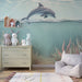 Papel pintado infantil | Delfín alegre y fondos marinos encantados