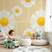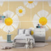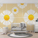Papel pintado infantil | Flores geométricas en blanco y amarillo