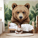 El osito, con su mirada curiosa y su cálido pelaje, está rodeado de delicadas hojas y vegetación tranquilizadora, creando un ambiente suave y acogedor. Los colores sutiles de este diseño, que van desde el verde suave hasta el marrón dulce, fomentan un entorno sereno que invita a la relajación y a la ensoñación.